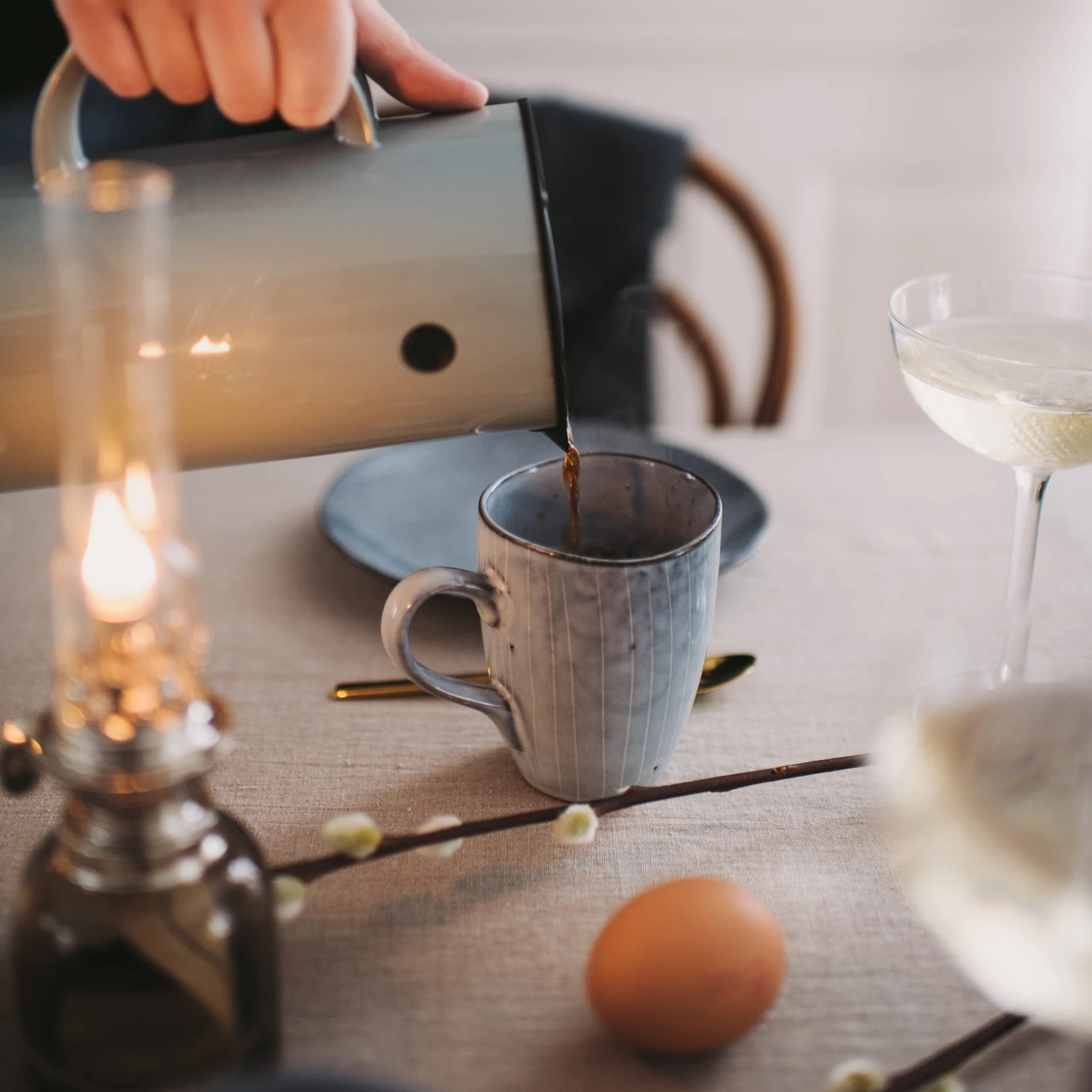Diese Tasse aus der Geschirrserie „Nordic Sea“ von Broste Copenhagen verzaubert mit ihrer Glasur in blau-grau-grünem Handmade-Look. Wie es schon der Name vermuten lässt, ist die händisch applizierte Glasur vom Farbspektrum der Nordsee inspiriert. Jedes Stück ist ein Unikat und macht den gedeckten Tisch zu einem Anblick gediegener Handwerkskunst.